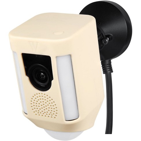 Plugged in hd security camera with built in spotlights two way talk and a siren alarm white works with alexa brand.